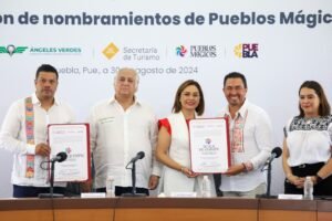 El gobernador Sergio Salomón, la presidenta honoraria del Patronato del SEDIF, Gaby Bonilla y el secretario de Turismo federal entregaron...