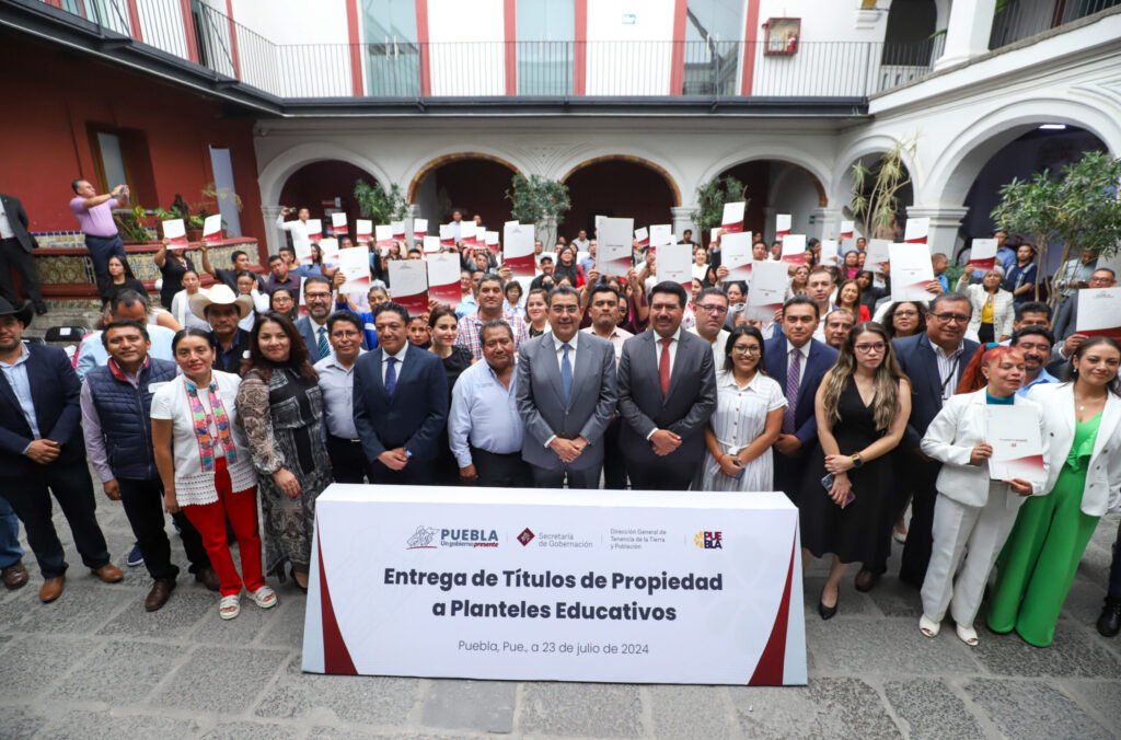 Para dar certeza jurídica sobre la propiedad de los inmuebles de instituciones escolares, el gobernador Sergio Salomón hizo entrega de 85 títulos de propiedad a planteles educativos del estado, como parte del Programa de Regularización de Predios Rústicos, Urbanos y Suburbanos, en el régimen de propiedad privada.