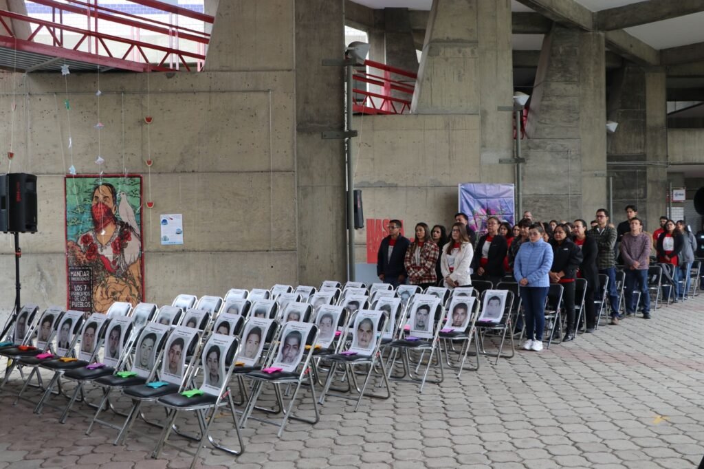 El testimonio de lucha y resistencia late con fuerza en la IBERO Puebla, donde se sigue exigiendo, como desde hace 10 años, verdad y justicia en el caso de los 43 estudiantes desaparecidos de la Escuela Normal Rural Raúl Isidro Burgos de Ayotzinapa, Guerrero. Con 43 sillas vacías, y sus rostros impresos en ellas, la vida, memoria y esperanza por encontrar a cada uno de los jóvenes se hizo presente.