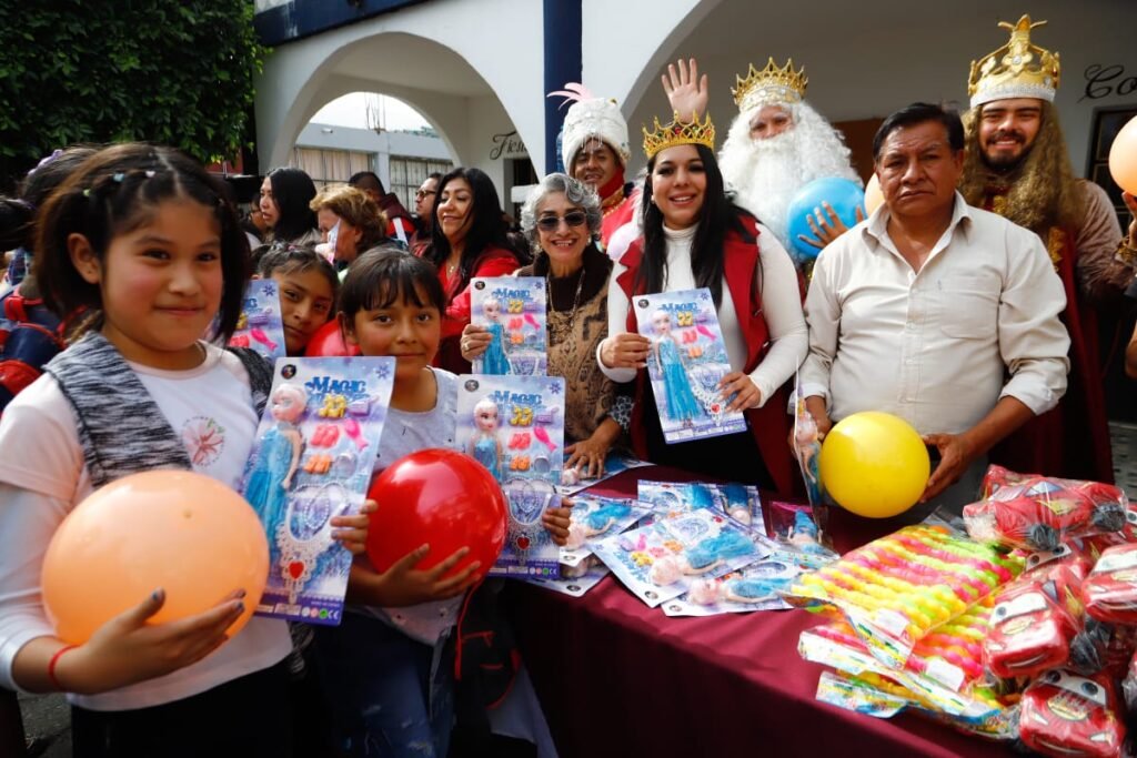 En compañía de la alcaldesa, la presidenta honoraria del Sistema Municipal DIF, Lupita Fernández; así como de secretarios, directores y regidores, los Reyes Magos visitaron a las y los niños cholultecas, quienes disfrutaron de shows de payasos, inflables y recorridos en tren, para culminar recibiendo juguetes.