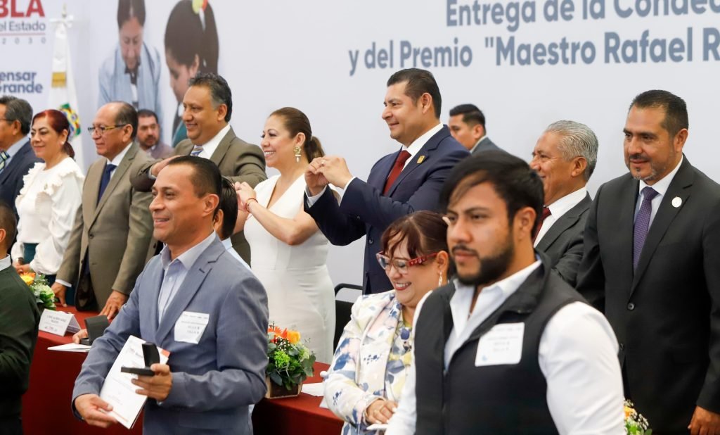 CIUDAD DE PUEBLA, Pue.- Con la reconstrucción del CAPCEE se apoyará más a las escuelas, con la auditoría del ISSSTEP se atenderá con dignidad a los maestros y con el Programa de Obra Comunitaria se apoyará con paneles solares a las instituciones educativas, afirmó el gobernador Alejandro Armenta, al entregar la Condecoración «Maestro Manuel Altamirano por 30 años de servicio y el premio «Maestro Rafael Ramírez», por 40 años de trabajo a profesores del estado.